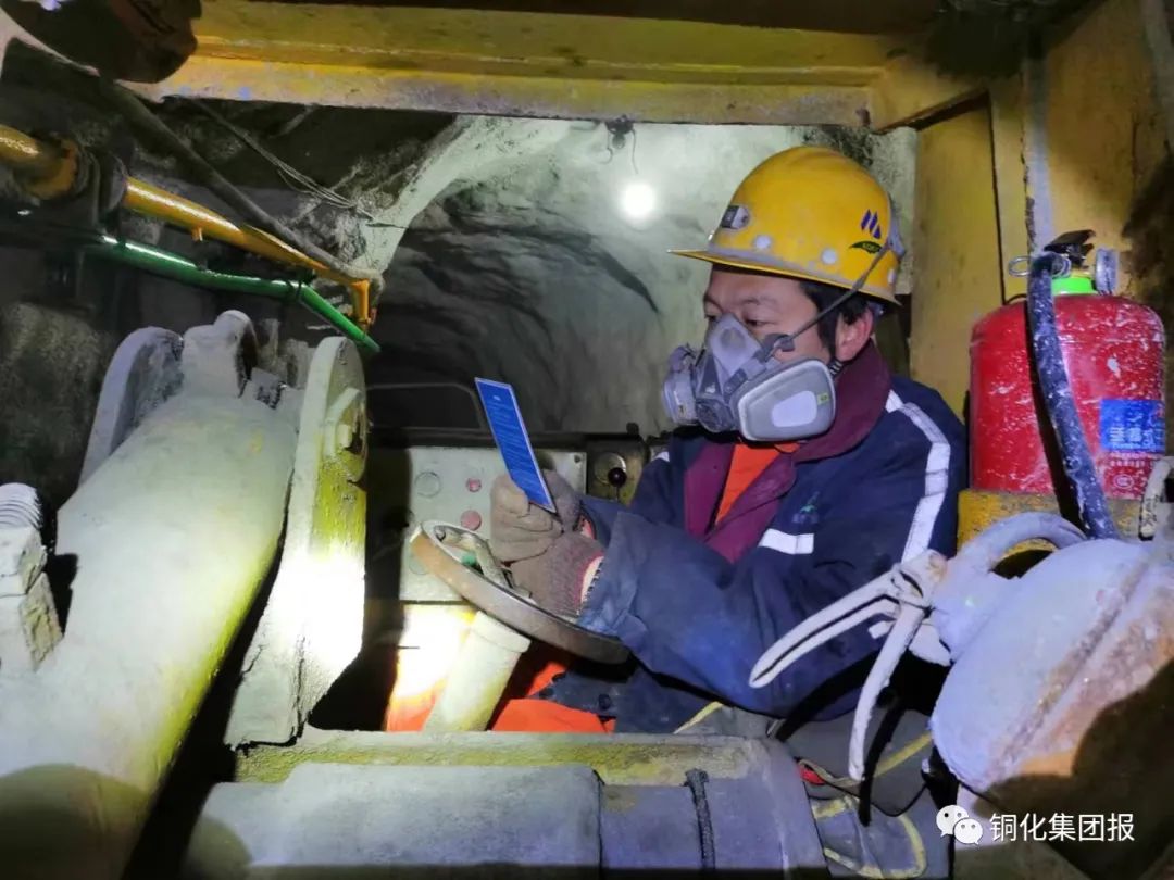 下圖:鏟運(yùn)機(jī)司機(jī)蔣繼能在作業(yè)前閱讀風(fēng)險(xiǎn)識(shí)別卡。